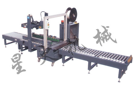 XFK-1D低臺(tái)自動(dòng)封箱捆扎生產(chǎn)線由一臺(tái)FXJ-5050LD半自動(dòng)封箱機(jī),一臺(tái)KZD-G8080低臺(tái)自動(dòng)捆扎機(jī)及一臺(tái)SJGD-100/66無動(dòng)力輥筒輸送機(jī)組成。
